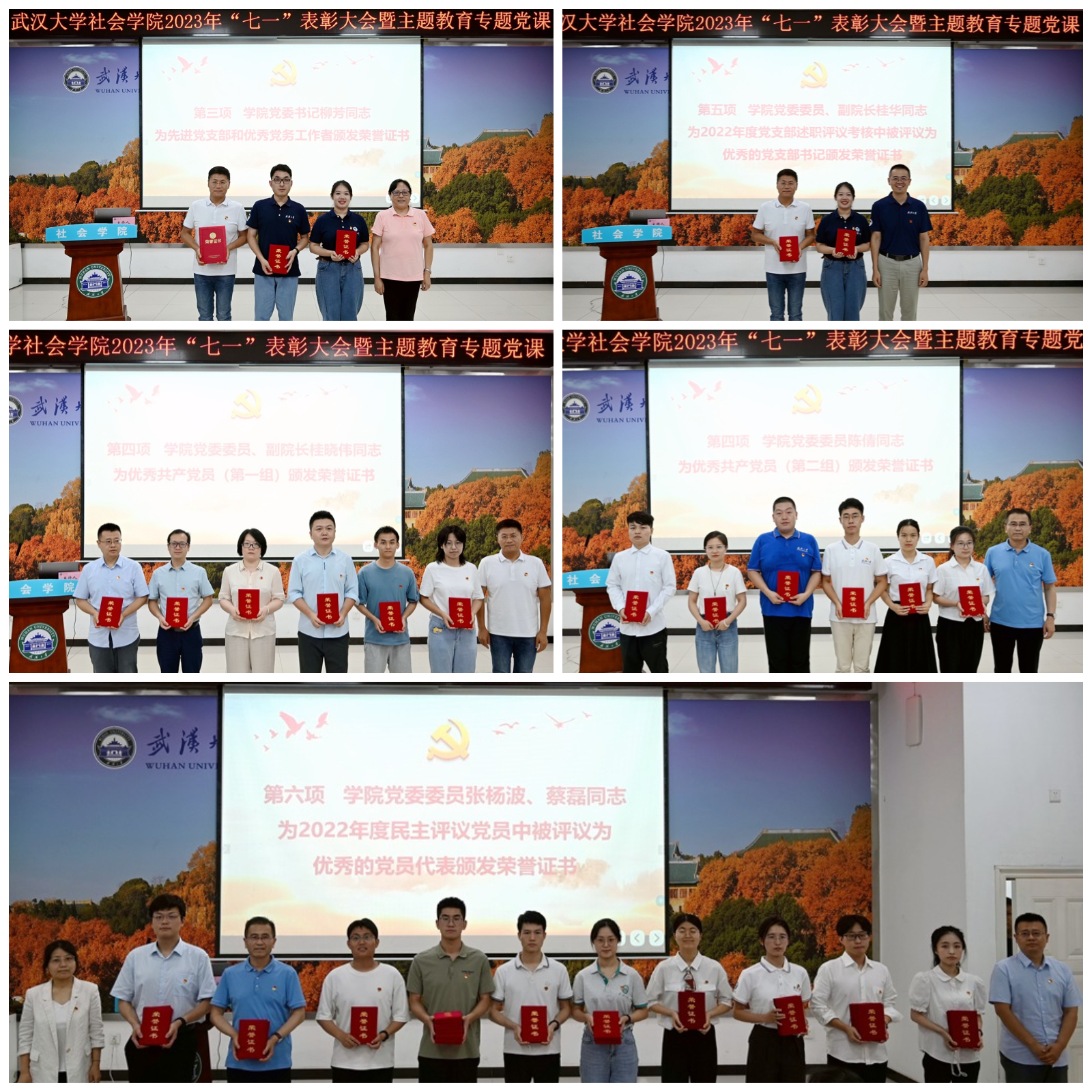 学院党委委员分别为先进党支部、优秀党务工作者、优秀共产党员、2022年度党支部述职评议考核中被评议为优秀的党支部书记和2022年度民主评议党员中被评议为优秀的党员代表颁发荣誉证书。