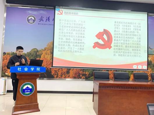 第三项,进入到小组交流环节。38名团员分为6组围绕戏曲表演的感想、红色作品分析、党史回顾三方面内容进行展示。