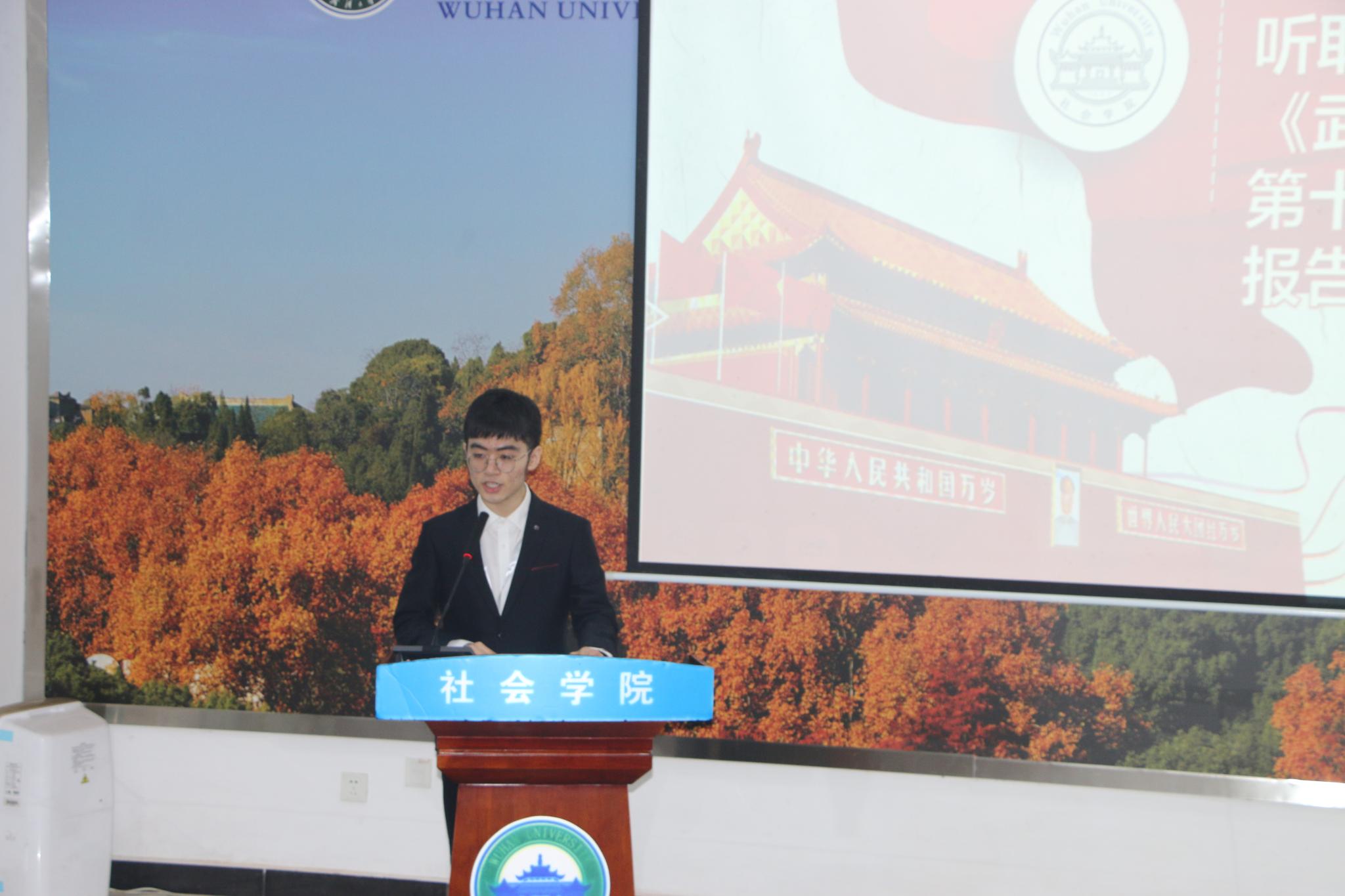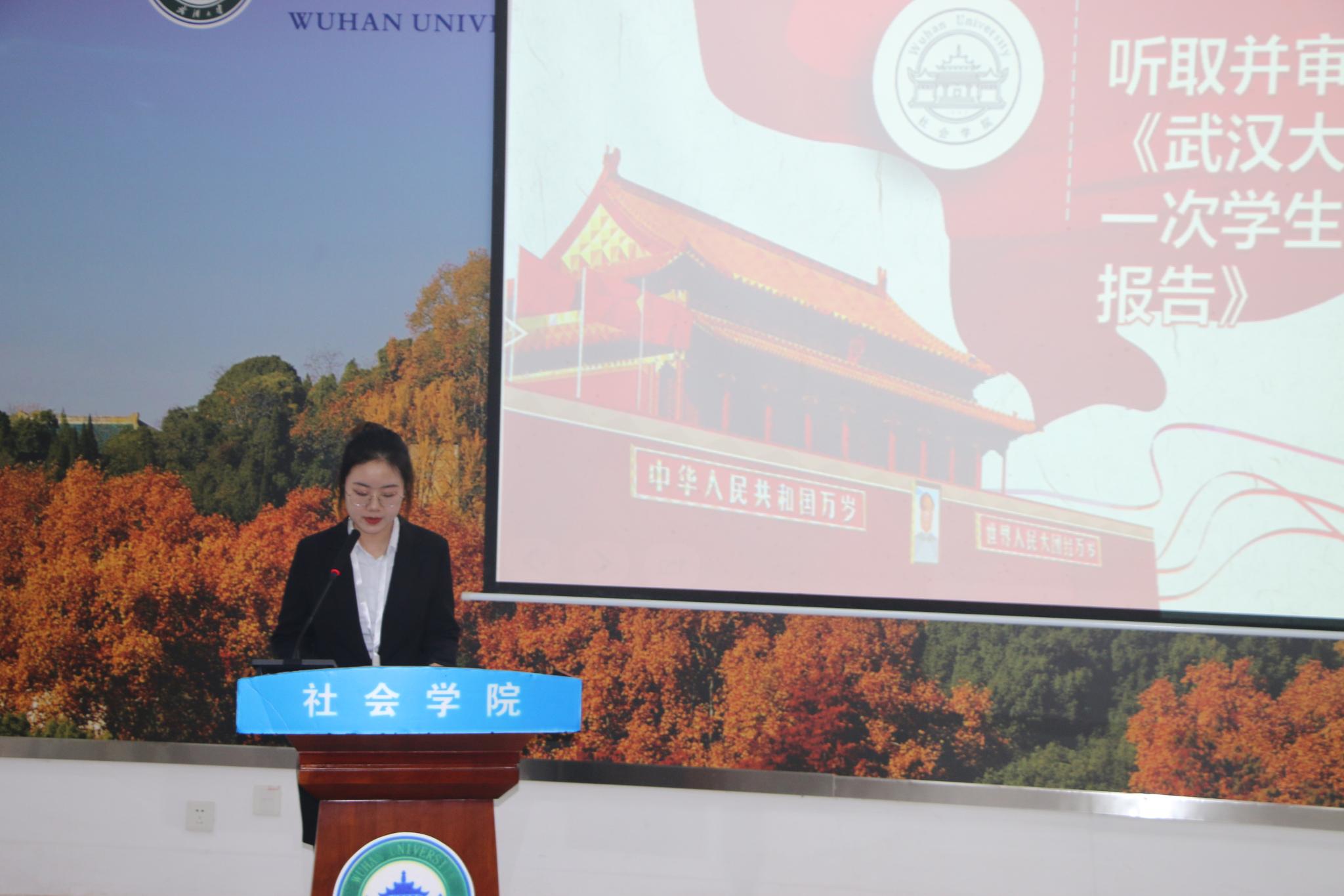 社会学系第十四届学生会主席郭杨汗青代表学生会向大会做工作报告。报告中回顾了社会学系第十四届学生会一年多的工作成果,在总结反思的同时对万象城awc官网登录入口第一届学生会工作寄予了期待,希望新一届学生会继续努力,在新的征程中,始终保持初心与热忱,共建群学风采,共谱社院篇章。