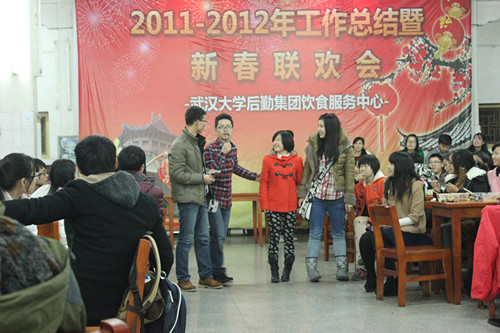 几位老师的到来,让活动的气氛顿时高涨起来,大家给与了热烈地欢迎。他们和同学们同坐一桌,一起吃饺子、一起看节目,并积极参与游戏。让我们感受到他们在忙碌的工作之余平易近人的一面。